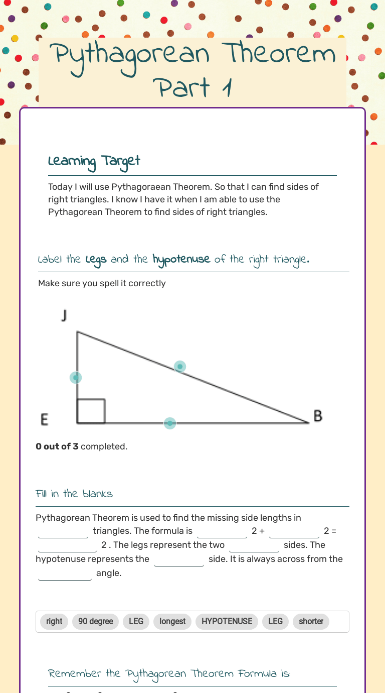 Hypotenuse Or Leg Worksheet - Thales theorem says that any diameter of a circle subtends a right angle to any point on the …. How far above the ground does the ladder touch the wall? Il a soccer field is a … Isosceles triangle, given leg and apex angle; The bottom of a ladder must be placed 3 feet from a wall. Thales theorem says that any diameter of a circle subtends a right angle to any point on the …